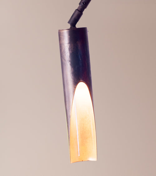 Patinated brass shades and arms with casted bronze connections